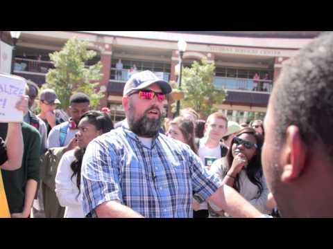 Evangelist sparks controversy at University of Alabama - Kerrigan Skelly - University of Alabama students gathered to speak out against Kerrigan Skelly, founder of PinPoint Evangelism, as he addressed crowds in the Ferguson Student ...